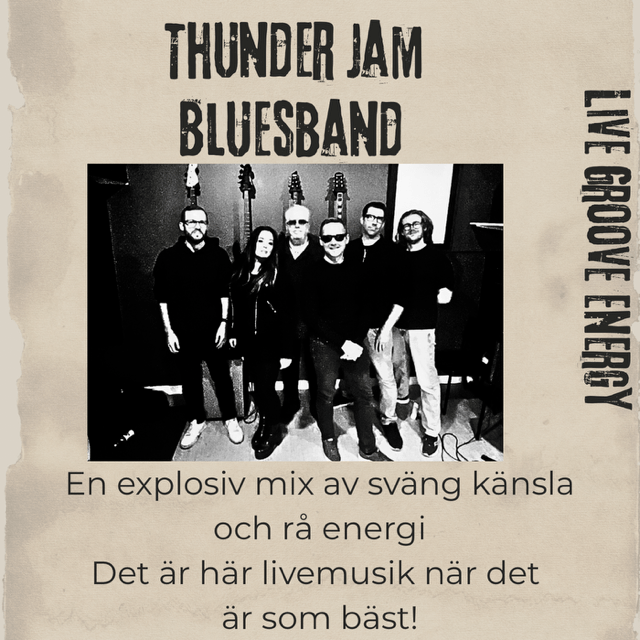 Det här vill ni inte missa! En grym livekväll med Thunder Jam Bluesband – ett band som bjuder på en explosiv mix av blues, soul, rock och funk.